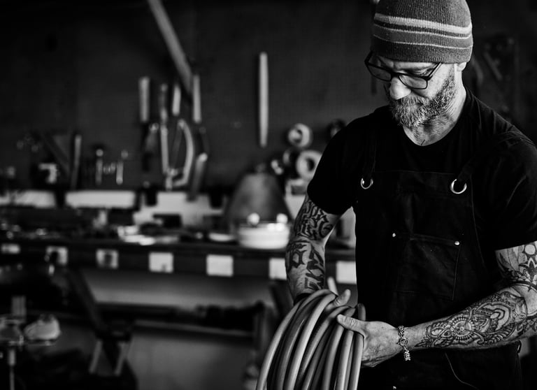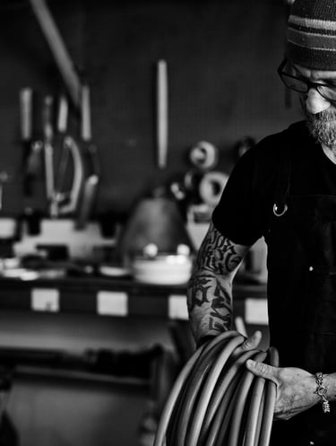 All of my work, from initial pencil sketch through detail design, color treatment, and assembly is entirely inspired by my life experience. The shapes, aesthetics, and emotions that most impact me personally are directly reflected in the tone and style of my art. Communicating this sincerely, without artificial enhancement, is precisely what makes this endeavor worthwhile for me.